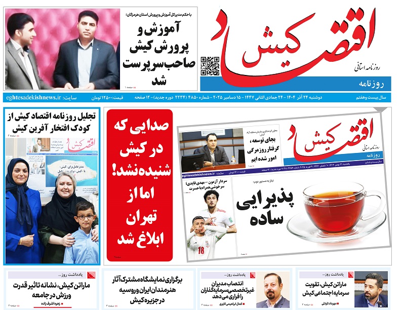 تجلیل روزنامه اقتصاد کیش از "الوین انتظار مهدی" کودک افتخار آفرین کیش